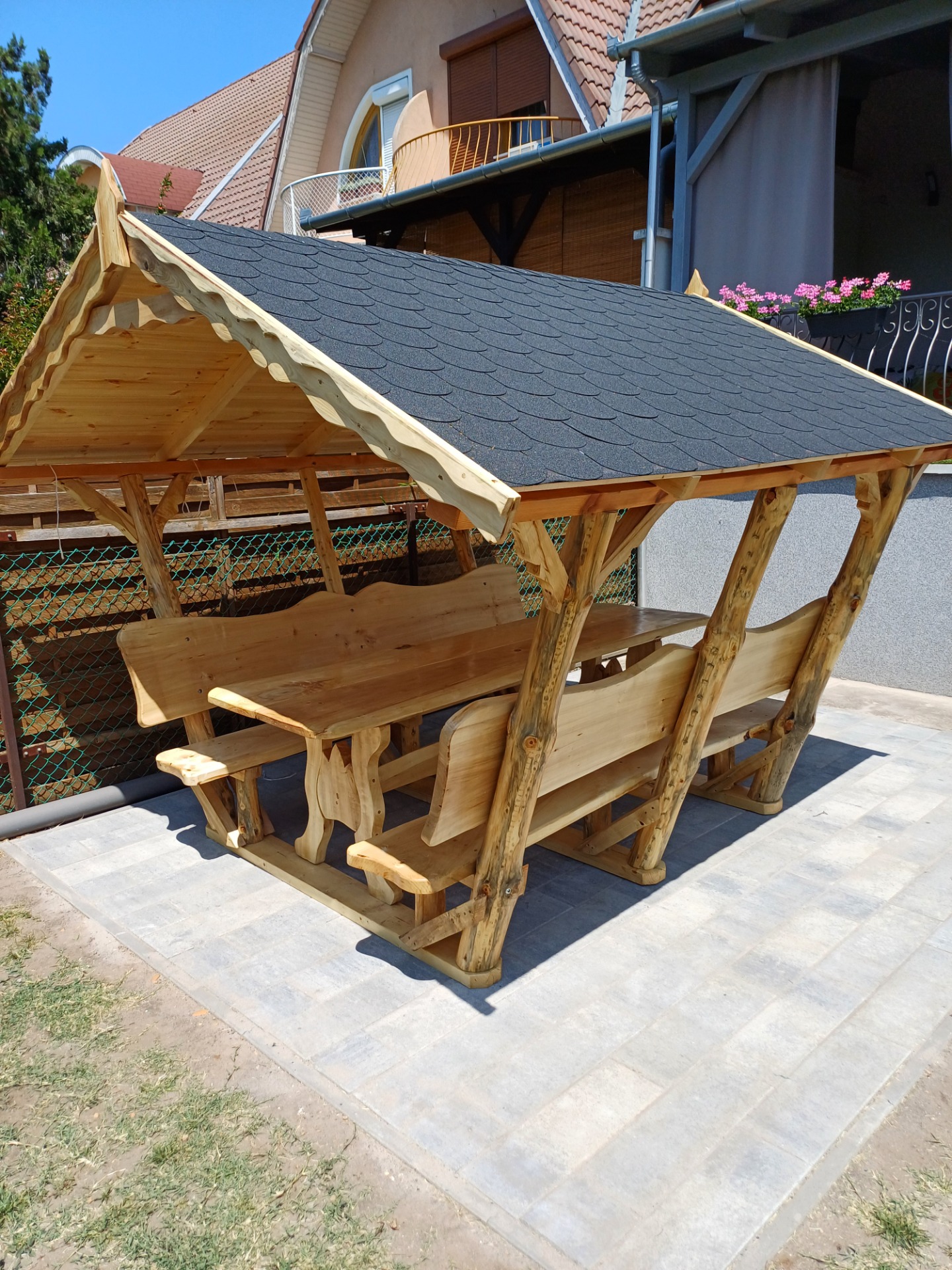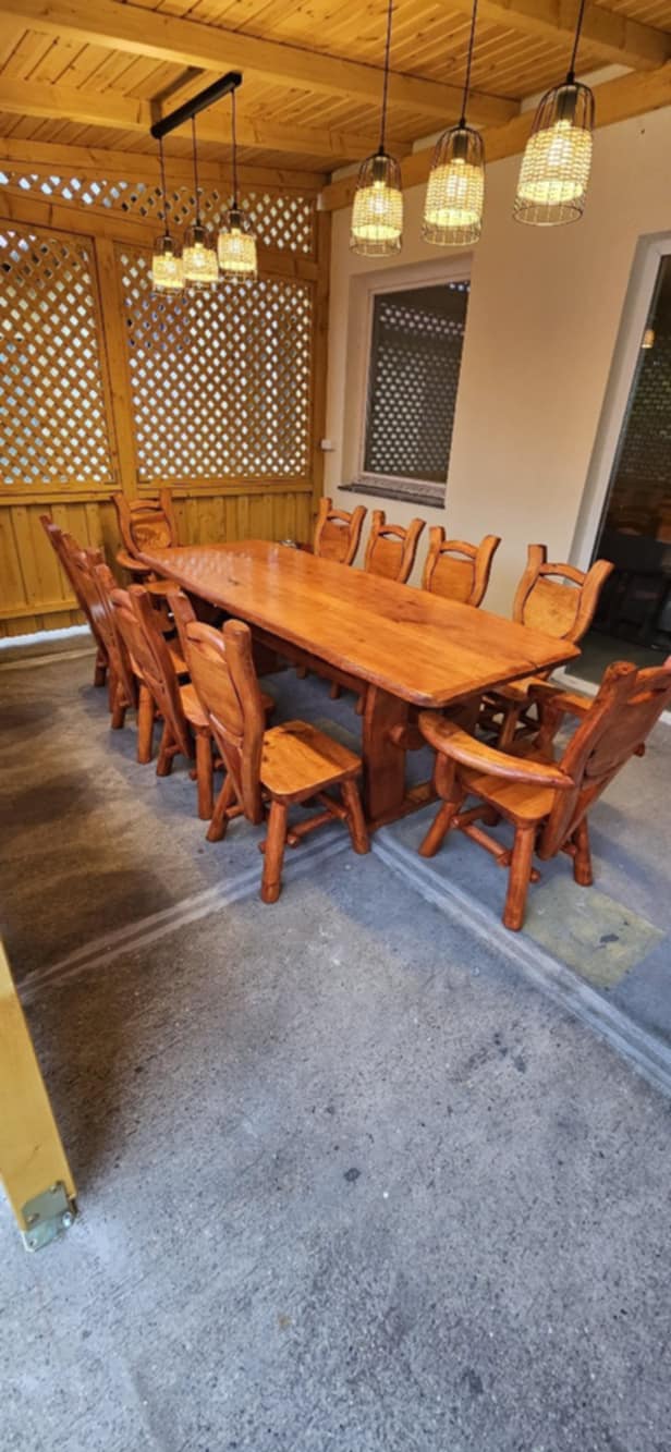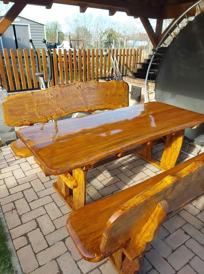 -200 cm asztal padokkal + 2 kispad