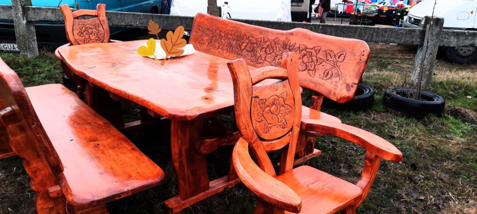 -250 cm asztal padokkal + 2 kispad